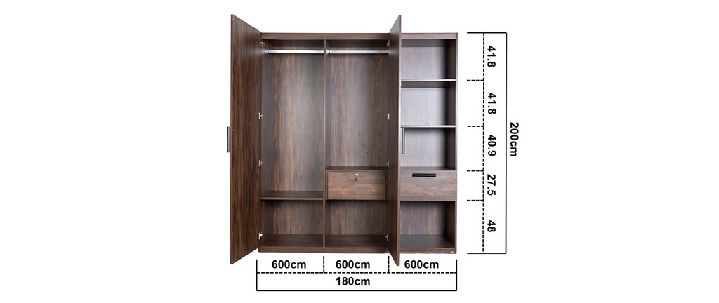 1 Set Tủ Quần Áo 3 Cánh : W1800 X D600 X H2000