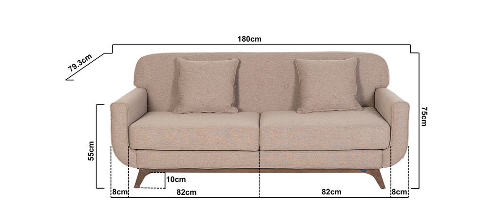 1 Ghế Sofa : W1800 X D790 X H750